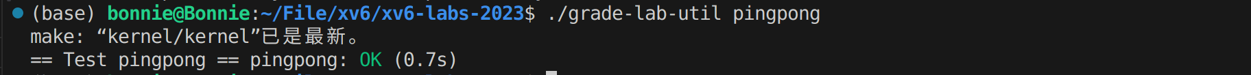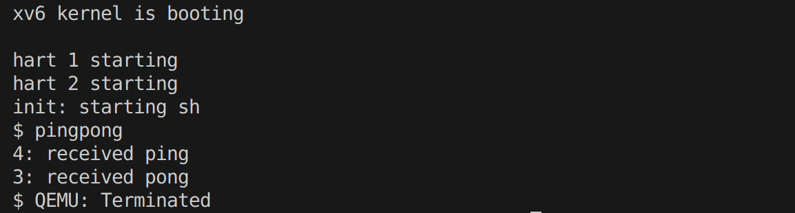read和write系统调用:1 2read(p[0], &receive, 1); write(p[1], &send, 1);这些调用在父子进程之间传递数据。