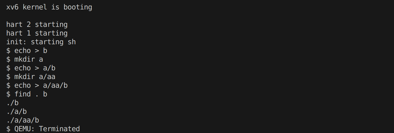 open的实现:内核查找路径对应的文件或目录。分配一个文件表项,设置文件描述符。read的实现:内核从目录文件中读取目录项。如果目录项为空,返回 0。stat的实现:内核查找路径对应的文件或目录。返回文件或目录的状态信息,包括类型、大小等。