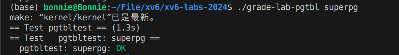 if (a + SUPERPGSIZE == last + PGSIZE) // 检查是否已经映射到最后一个超级页面